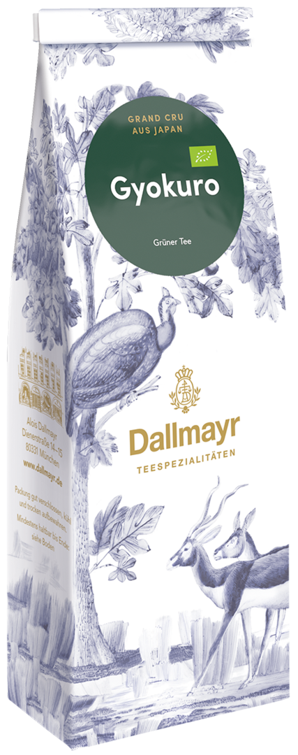 Gyokuro steht für „Juwelentau" und ist die höchste Grünteequalität, die Japan hervorbringt. Nur die zartesten Teeblätter werden von Hand gepflückt und nach alter Tradition weiterverarbeitet. Kurz vor der Ernte wird der Tee mit Schilfmatten vor der Sonne geschützt. Dadurch entwickelt der Gyokuro mehr Süße und Geschmack. Ein milder, hocharomatischer Genuss.