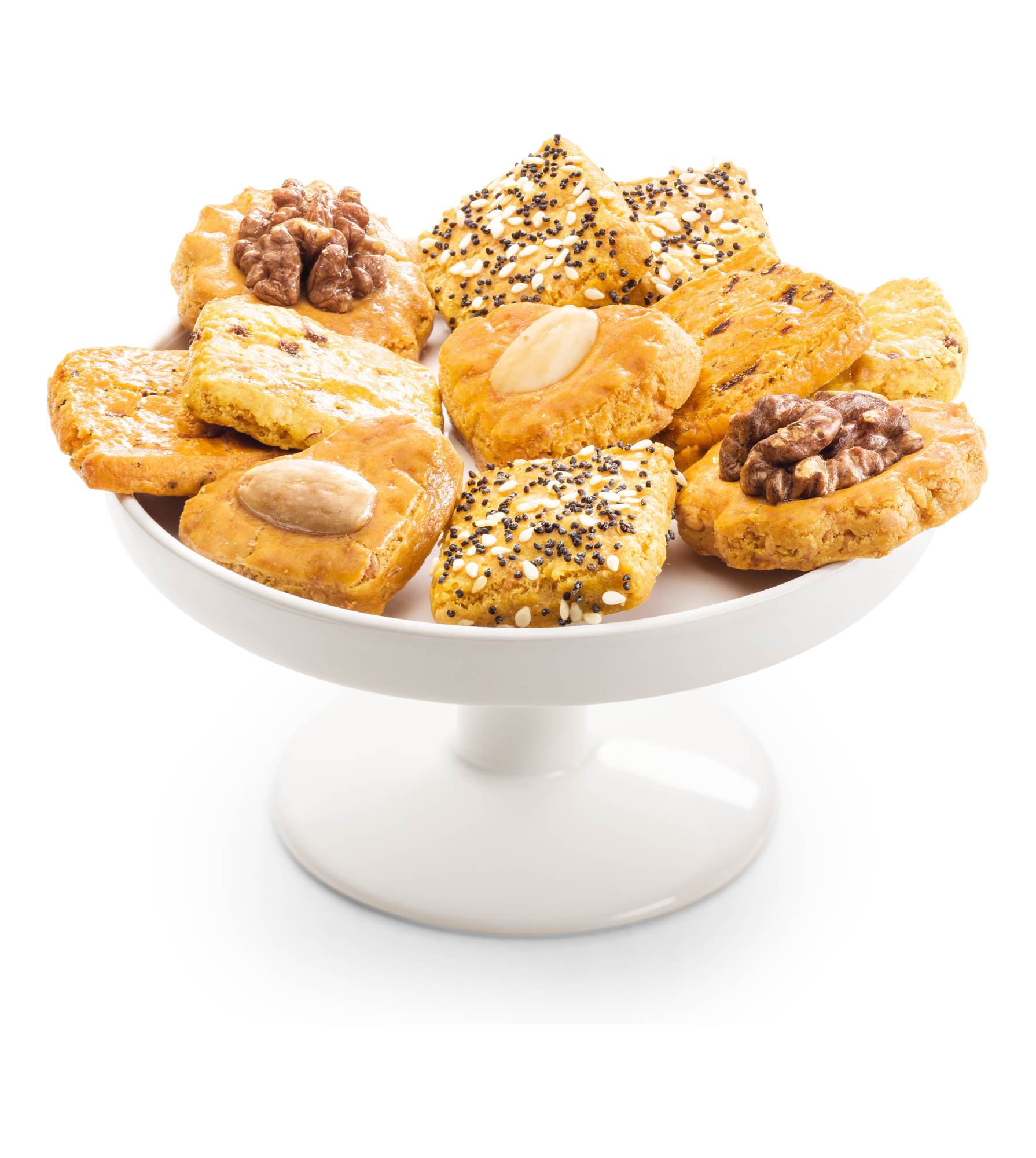 Ein feudaler Snack für zwischendurch. Schmeckt nicht nur zu einem Glas Wein ganz wunderbar, sondern macht auch solo eine gute Figur. Die himmlisch zarten Gebäck-Schiffchen aus Mürbteig sind mit Mohn, Sesam und ausgewählten Nüssen verfeinert. Wunderbar würzig und himmlisch leicht!
